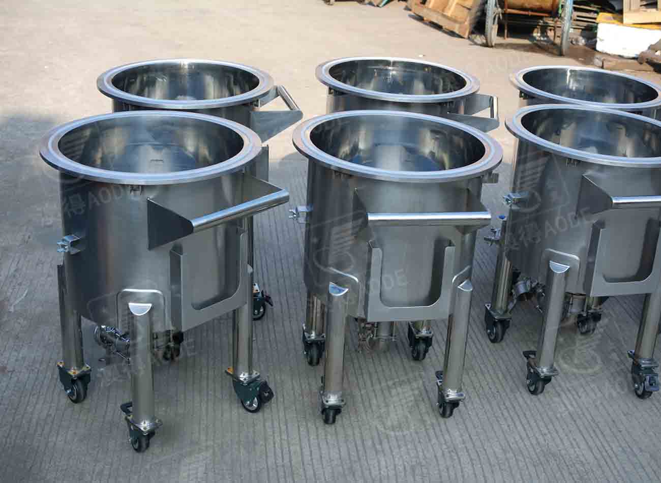 配放料(liào)閥,缸底(dǐ)可定制(zhì)爲平底(dǐ)傾斜出(chu)料,或圓(yuán)底錐底(di)中✊心出(chū)料,下有(you)移動輪(lun),帶自刹(sha)車裝置(zhi)。